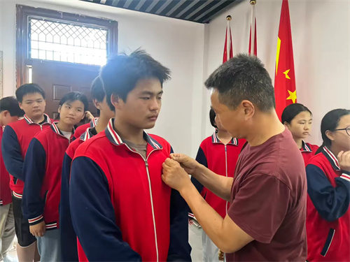 在热烈的掌声中,党支部汪厚通书记、党支部副书记吴兰书记手持团徽,郑重地为新团员佩戴于左胸前。这一刻,闪耀的团徽成为青春最鲜明的标识。