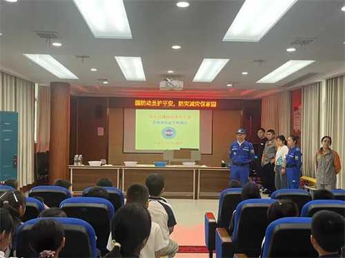 为增强青少年国防意识和防灾减灾能力,筑牢校园安全防线,6月11日下午,景德镇市蓝天救援队走进第21小学,为四年级全体师生带来一堂以“国防动员护平安,防灾减灾保家园”为主题的专题安全教育讲座。
