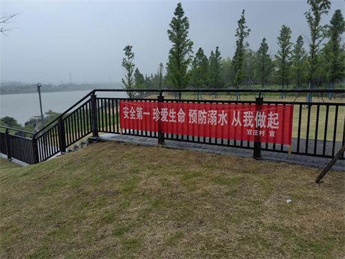 为有效应对可能出现的溺水险情,官庄村对辖区内河流、池塘、水库等水域进行全面排查,在各危险水域统一配备‘四个一’防溺水救援设施,即:一块安全警示牌、一个救生圈、一根救援安全绳、一对救生毛竹竿。这些设施的安装,为溺水救援提供了有力的物质保障。警示牌时刻提醒着人们注意水域安全,远离危险;救生圈、安全绳和毛竹竿则能在关键时刻发挥救援作用,为溺水者争取宝贵的救援时间。