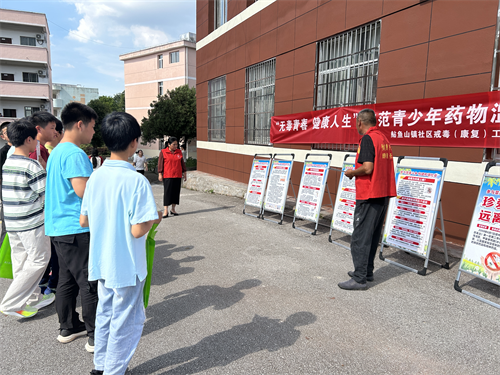 2025年6月26日是第38个国际禁毒日,为进一步提高青少年对药物滥用危害的认识,增强自我保护意识,鲇鱼山镇平安法治办联合鱼山司法所前往鱼山中学开展“防范青少年药物滥用”宣传活动。