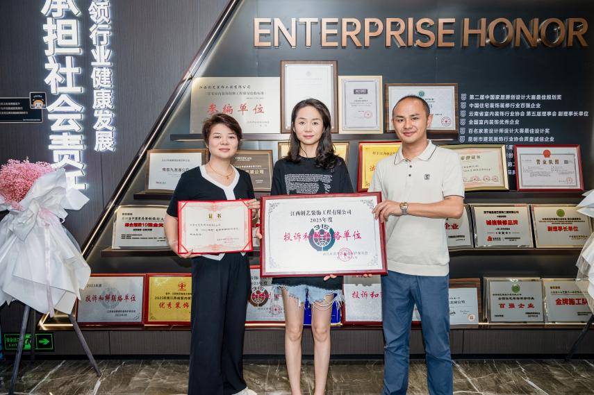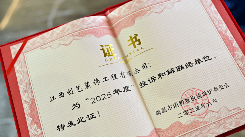 7月18日,南昌市消费者权益保护委员会正式授予创艺装饰“2025年度投诉和解联络单位”荣誉牌匾。