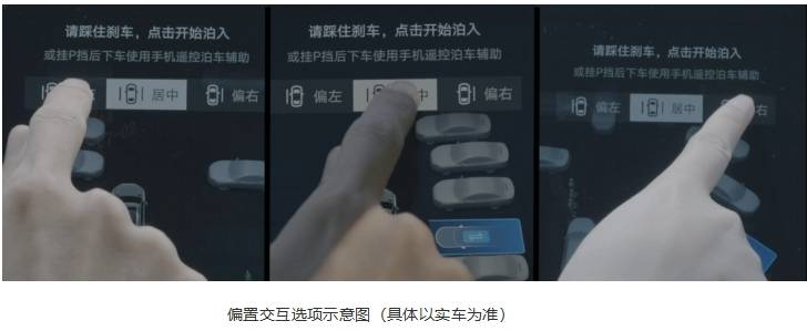 偏置泊车适用于天神之眼C、天神之眼B、天神之眼A平台,驾驶员选择好可泊入的车位后,可以根据两侧车辆或其他障碍物的位置状态,手动选择车辆的偏置状态,可选择居中、偏左、偏右,从而与他车保持一定间隙,方便上下车的同时规避剐蹭等风险。