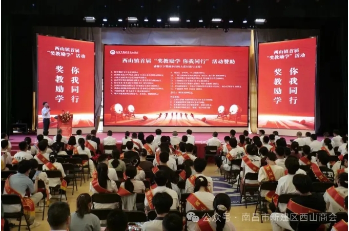 区委常委、统战部部长戴军,区人大常委会副主任、区工商联主席程伟川,区政协副主席、区教体局党委书记、局长刘建新,西山镇党委书记龚若川,新建区红十字会党组书记、常务副会长张丽出席活动。西山镇全体班子成员、各村(社区)负责人、受表扬对象、学生家长以及全体西山商会会员共计500多人参加活动。