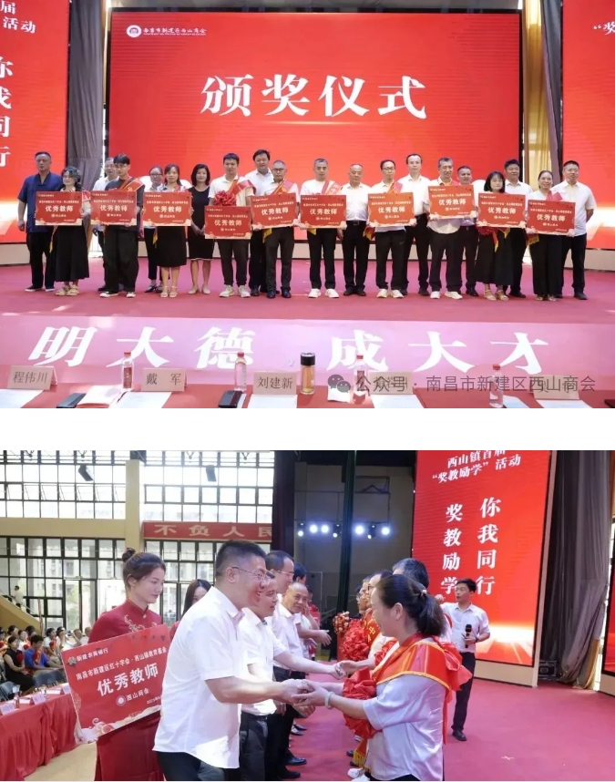 上午9时,活动在庄严的国歌声拉开序幕。西山商会会长吴宇首先登台致辞,表达商会情系桑梓、支持家乡教育事业的坚定决心。随后,西山镇教育基金管委会副主任李友金宣读表彰决定,10名在教学岗位上辛勤耕耘、成绩卓著的优秀教师代表、22名在今年中考中录取新建二中以及163名高考中取得优异成绩,录取本科院校的西山学子登上领奖台,接受奖励,现场掌声雷动,气氛热烈。