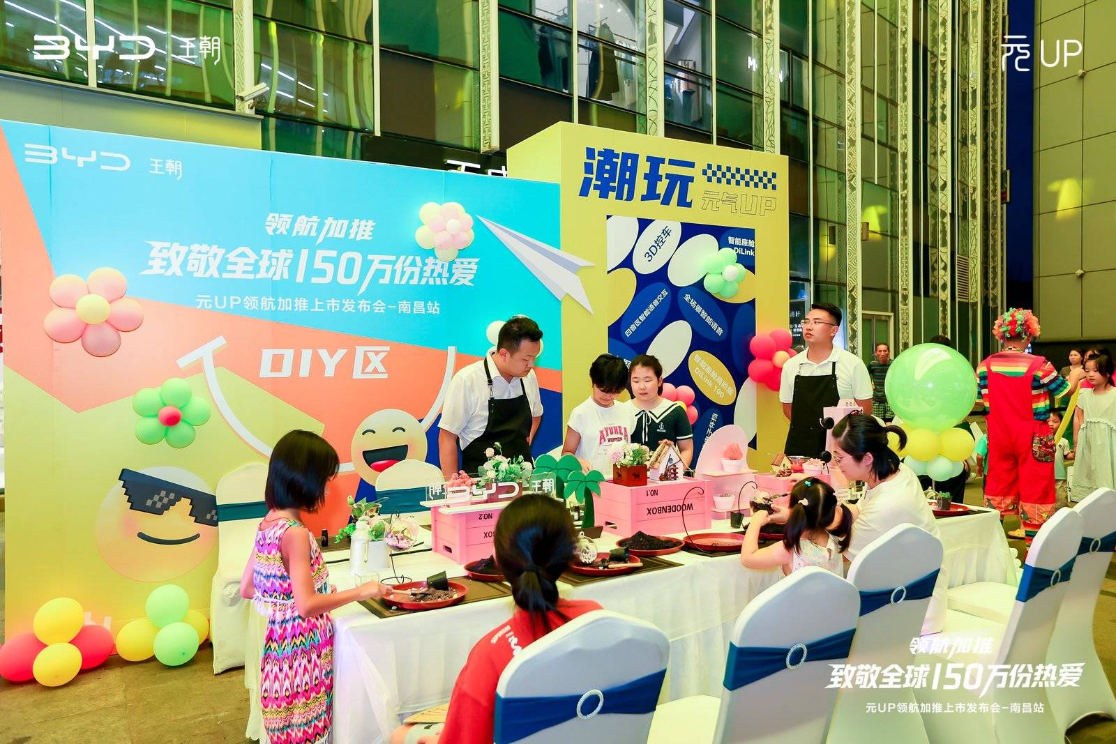 活动从18:00起面向公众开放全场景体验环节,活动区域以巨型天幕为基底,打造出元UP的潮流空间。媒体与车主首先在潮玩签到区领取元气伴手礼,随后进入静态品鉴区近距离感受元UP的冠军魅力,让现场体验者直观感受 “小身材大能量” 的产品优势。