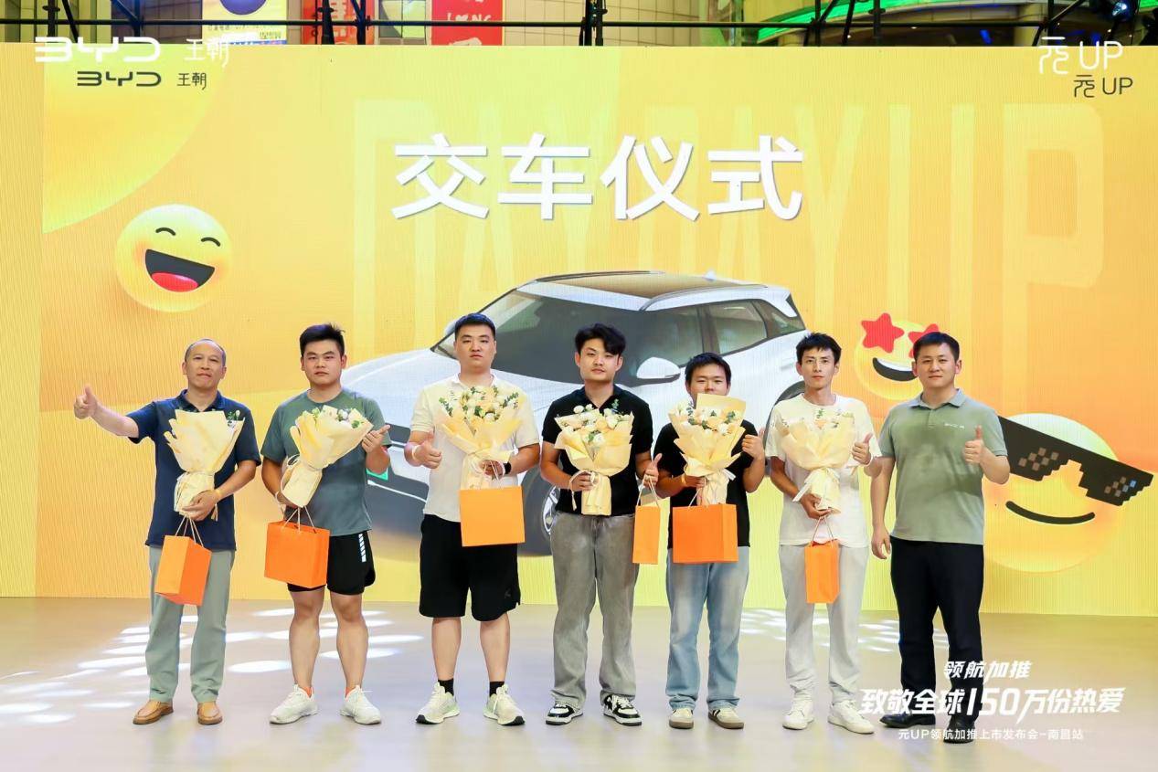 发布会最具温度的环节当属交车仪式。南昌元UP车主从比亚迪王朝网江西大区运营经理周博中先生手中接过象征元气生活的车钥匙,舞台上是车主与家人的幸福笑容,舞台下是观众的热烈祝福。这不仅是新车的交付,更是人与品牌之间信任的见证。