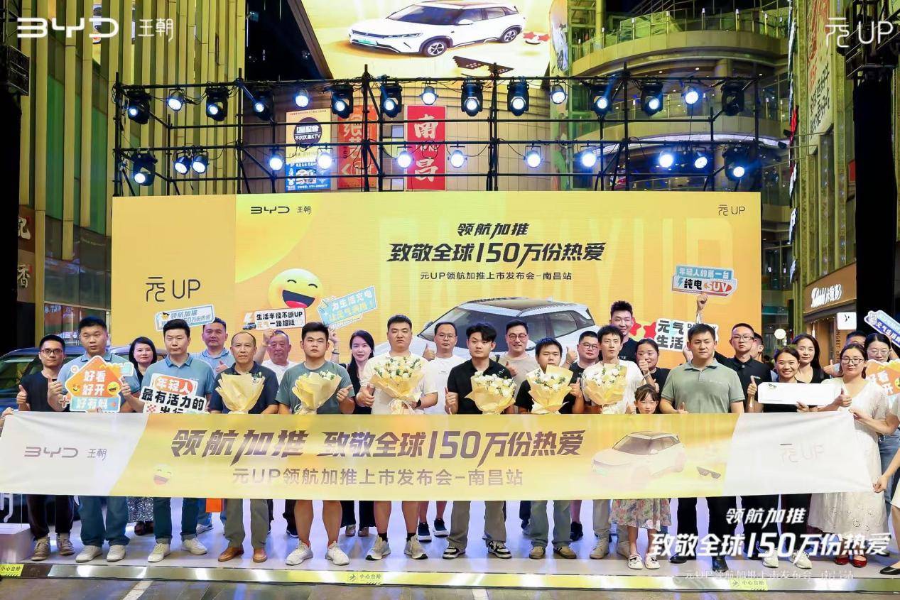 2025年8月23日,比亚迪王朝网“元 UP 领航加推上市发布会”在南昌恒茂梦时代广场盛大启幕。本次活动以“领航加推 致敬全球 150 万份热爱”为主题,携A0级纯电SUV冠军车型元UP震撼登场,融合潮流场景体验与科技产品力展示,吸引了江西主流媒体、核心车主及都市潮人齐聚现场,共同见证比亚迪在新能源细分市场的又一里程碑时刻。