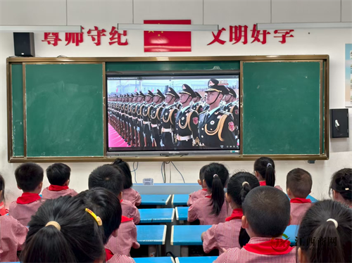 学校高度重视此次观看学习活动,将其作为一堂重要的思想政治课和爱国主义教育实践课进行部署。各年级、各班级组织学生观看。直播过程中,师生们全神贯注,认真聆听了习近平总书记重要讲话,观看了气势恢宏的阅兵仪式。大家共同见证了这一盛大而庄严的时刻。当阅兵仪式开始时,少先队员们连连惊叹于方队的整齐有序,有的还忍不住模仿着军人的姿势,坐得更加笔直。他们的眼中闪烁着光芒,被阅兵式上的庄严场面所深深震撼。