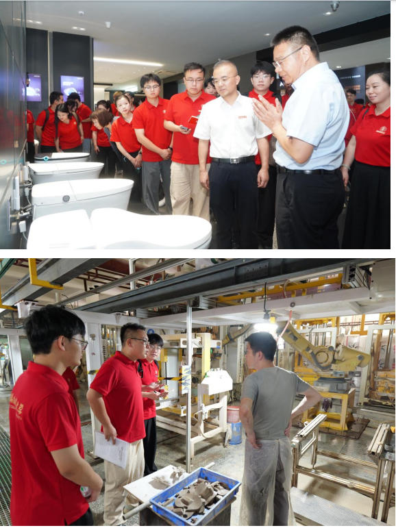 6月30日,在景德镇陶瓷大学党委书记蒲守智带领下,实践队深入景德镇陶瓷大学战略合作企业——景德镇乐华陶瓷洁具有限公司开展产学研融合调研。企业工作人员介绍了公司整体情况,随后景德镇陶瓷大学党委书记蒲守智发表讲话鼓励广大师生,结合当前形势,特别是景德镇陶瓷产业发展实际,要在时代浪潮中勇立潮头。将课堂所学转化为市场所需。