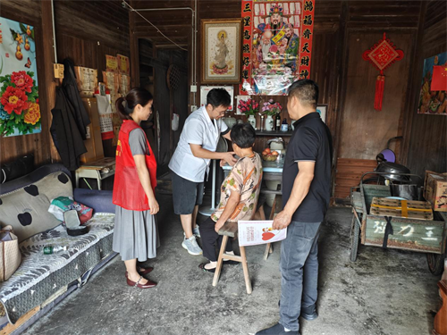 活动中,工作人员与医护人员一同走进村民家中。在村民的屋内,医护人员仔细为村民进行身体检查,耐心询问身体状况,针对常见的健康问题,如高血压、糖尿病等慢性疾病的预防与日常护理,进行了详细讲解。同时,工作人员还向村民发放健康科普资料,用通俗易懂的语言,为村民介绍健康生活方式、合理膳食搭配以及常见疾病的早期症状等知识。