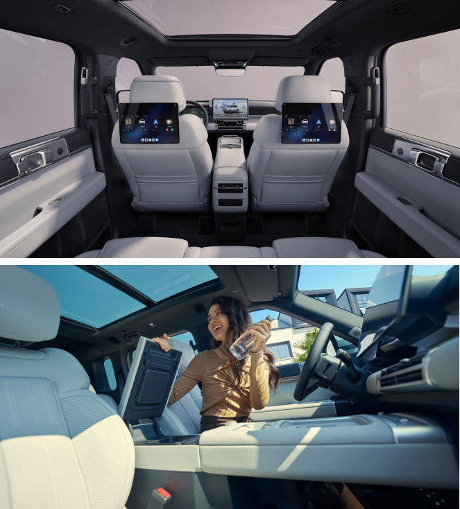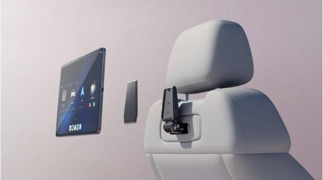 钛7首发首搭比亚迪自研BYD Pad,是行业首款专为“车载使用”而设计、支持车家两用的智能平板,支持45项车控功能;前排座椅背后的BYD Pad转轴支架,更兼容市场上的各大主流平板,可在车内实现固定和充电;钛7全球首发搭载比亚迪自研电动滑板、自研游戏手柄等,同样为家庭成员的出行增添多重乐趣。