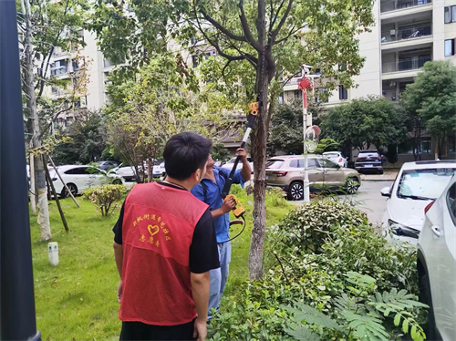 接到协调通知后,物业公司迅速响应,当天便安排具备园林修剪资质的专业人员携带工具进驻小区。作业过程中,工作人员不仅精准清理了遮挡各监控摄像头的树枝,还结合小区实际情况,对多处存在安全隐患的枯树枯枝、以及影响居民停车和日常出行的过密树枝进行了集中修剪。为避免作业影响居民生活,施工全程采取了安全防护措施,及时清理修剪产生的枝叶垃圾,保持小区环境整洁。