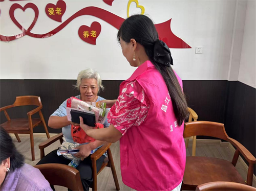 活动现场,镇卫健办工作人员及志愿者们身穿红色马甲,通过发放宣传手册与礼品,向参与活动的老年朋友和妇女群体普及生殖健康知识,包括常见妇科疾病预防、优生优育等内容。活动墙上“百善孝为先”的标语与“守护生殖健康 建设幸福家庭”的横幅交相辉映,既彰显了对老年人的孝亲敬老传统,又体现了对家庭健康的全面关注。
