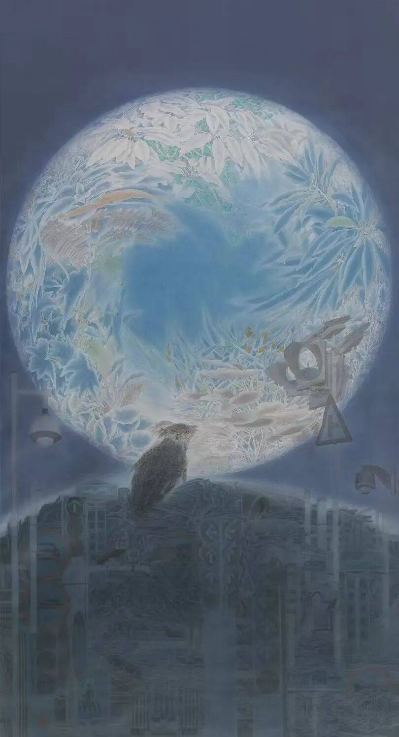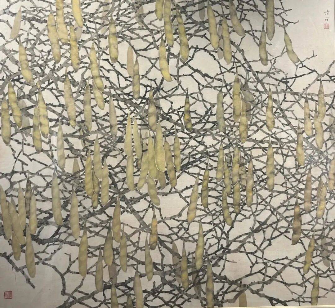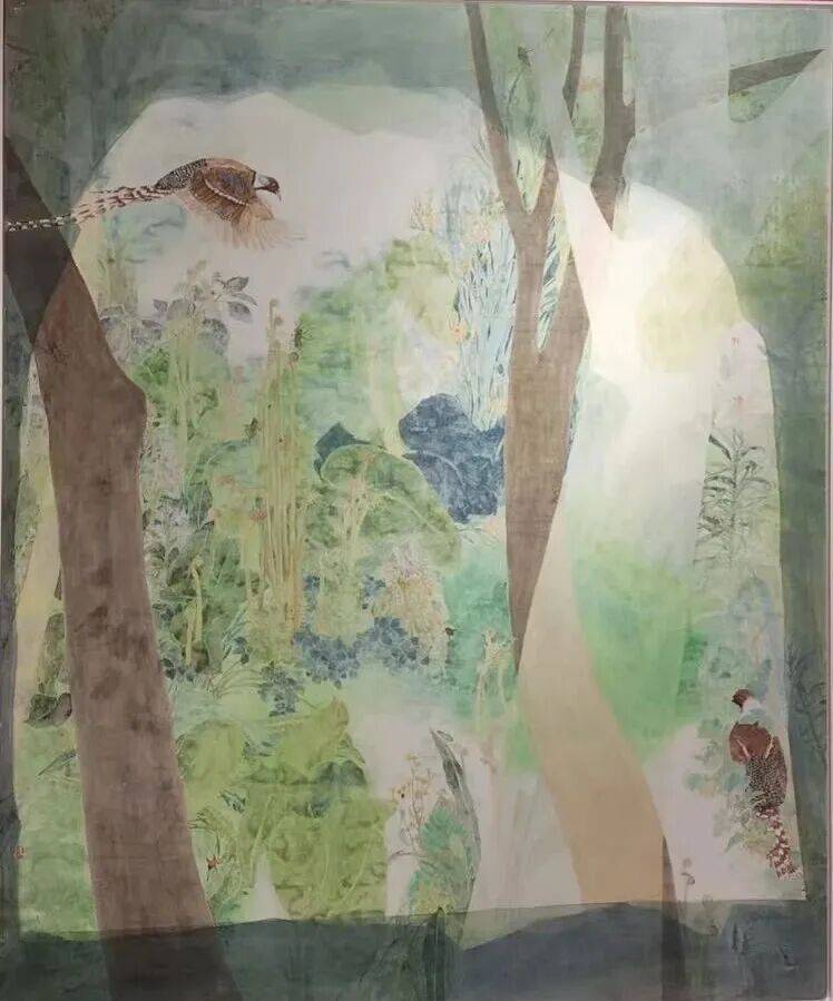 展览的学术指向:既有将花鸟形象纳入长江中下游生物多样性保护的当代语境,实现从“赏物”到“思物”的立场转换。又有青年一代普遍摆脱“宣纸+国画色”单一配方,尝试绢本岩彩、纸本综合、布面丙烯等多重载体,以“制作性”对抗“书写性”,拓展工笔的触觉维度。还有在图式构成与色彩体系上寻求“赣地性”与“全域感”的平衡。