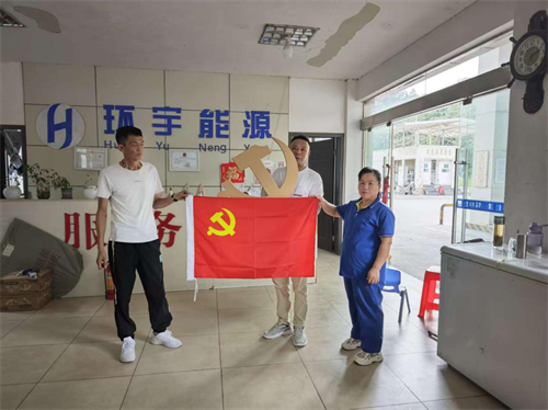 金秋送爽,丹桂飘香。在新中国成立76周年华诞即将到来之际,为深入学习贯彻党的二十大和二十届三中全会精神,推动党建与企业发展深度融合,9月29日,洋湖村党总支开展“迎国庆·送党徽党旗进企业”主题活动,通过向景德镇环宇能源有限公司赠送党徽、党旗及党建学习资料,开展“红色微党课”“党员亮身份”等配套活动,以党建“红色引擎”激发企业发展新动能,为企业送上了一份特殊的“国庆献礼”。