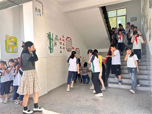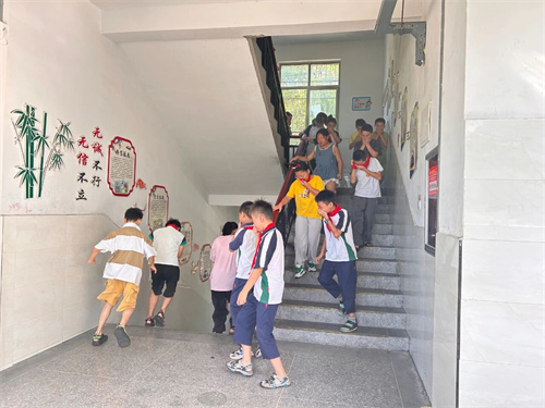 随着急促的消防警报声响起,演练正式拉开帷幕。各楼层负责老师迅速到位,沉着指挥。全体学生在班主任和任课老师的引导下,弯腰低姿、用湿毛巾捂住口鼻,沿着预定疏散路线,快速、有序地撤离到学校操场的安全地带。整个疏散过程紧张而不慌乱,用时仅2分55秒,达到了预期效果。