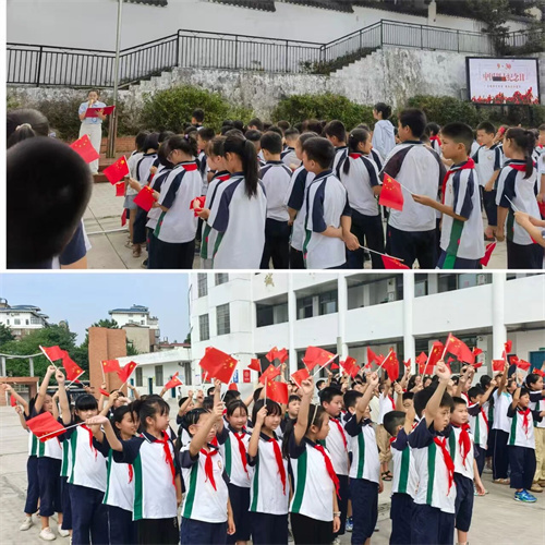 9月30日早上,一场庄严而热烈的“双节同庆”主题活动如期举行。全体师生肃立,齐声高唱国歌,注视着五星红旗冉冉升起,澎湃的民族自豪感在心中激荡。潘校长的国旗下讲话,让孩子们读懂了国旗的意义。操场上,全校学生举着国旗凑向镜头,让笑脸与国旗撞个满怀。教室里,班级同学伴着清脆的欢呼,将这份对祖国的欢喜,定格在每一个生动的瞬间。