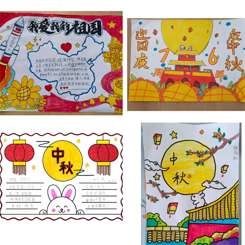 黑板报上,孩子们把中秋的圆月亮和国庆的五角星画在了一起,金黄与赤红撞出满满的节日感;手抄报上更热闹,有的画着嫦娥抱着月饼望向国旗,有的写下“月饼甜,祖国强”的稚嫩句子。这一方方黑板、一张张画纸,都是孩子们送给双节最用心的“小礼物”。