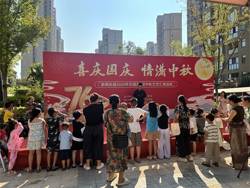 金秋送爽,丹桂飘香,在国庆与中秋双节交汇的美好时节,10月5日上午,新枫街道综合文化站联合嘉和社区精心策划的“喜庆国庆,情满中秋”文艺汇演热闹开演。活动现场彩旗飘扬,红灯笼与中秋元素装饰相映成趣,社区居民早早到场,带着期待的笑容等候演出开始,温馨祥和的氛围弥漫在每个角落。