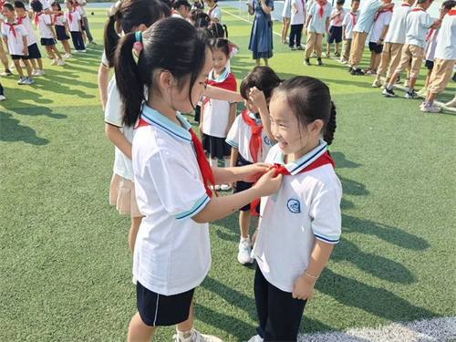 今天,是一个崭新的起点。一条条鲜艳的红领巾,如同一团团跳动的火焰,激励着队员们不断前行。亲爱的孩子们,愿你们铭记这一刻,珍惜红领巾的荣誉,在星星火炬的指引下,努力学习,快乐成长,争做新时代的好队员,为实现中华民族伟大复兴的中国梦,时刻准备着!
