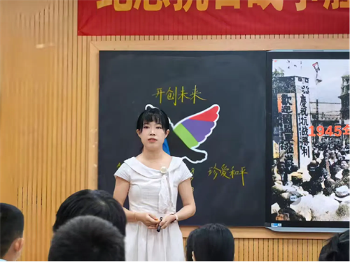 开创未来》,以抗日战争胜利80周年为核心,通过关键事件讲解,帮助学生理解胜利与和平的来之不易。课程激发学生对英雄的崇敬,树立珍爱和平、反对战争的价值观,筑牢爱国主义情怀。课堂上,学生们通过沉浸式感受革命先辈的英勇无畏;通过绘制“和平心愿卡”,将历史感悟转化为守护和平的坚定决心。课程既落实了《义务教育历史课程标准》中“培养历史思维与家国情怀”的要求,又呼应景德镇市“红色基因传承示范校”建设目标 。