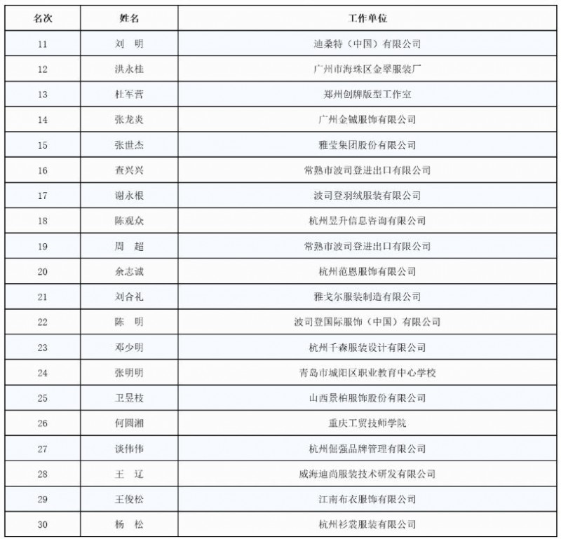 ——全国十佳服装制版师——