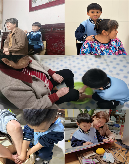 在此次活动中,一年级的同学们虽然还未戴上鲜艳的红领巾,但他们的行动却为“敬老爱老”作出了最纯真的诠释。镜头记录下了一个个温暖的瞬间:有的踮起脚尖,努力帮奶奶晾晒衣物;有的握起小拳头,轻轻为爷爷捶背,还贴心询问“力度合不合适”;还有的端来温水,用稚嫩的双手认真为家人洗脚,溅起的水花映照着他们专注的脸庞。这些看似微小的举动,却让孝心在生活的细节中熠熠生辉,也为全校同学树立了可亲可学的榜样。