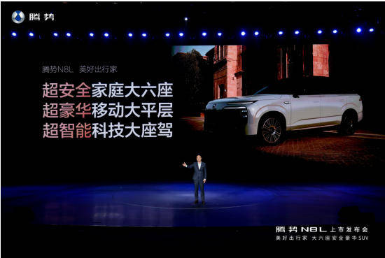 腾势总经理李慧用三句话总结N8L,就是:超安全家庭大六座、超豪华移动大平层、超智能科技大座驾,以硬核技术实力重塑家庭大六座豪华SUV新标准,与每个热爱生活的家庭一起奔赴美好。