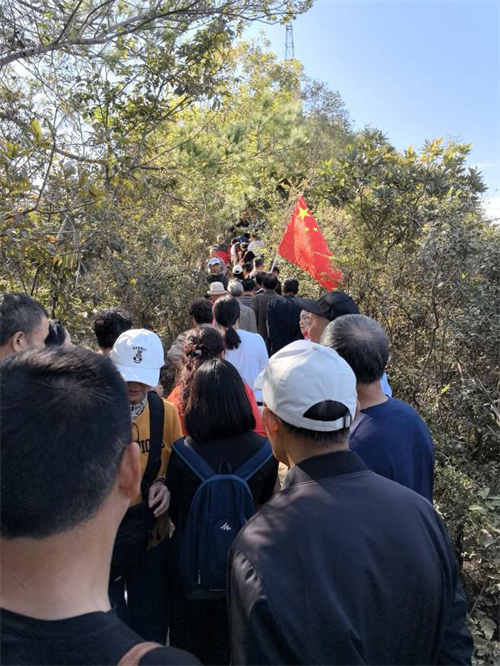 活动当天清晨,旸府山尖脚下暖意融融。随着一声“出发”,老人们精神矍铄地踏上登山步道,有的三五结伴畅谈生活趣事,有的驻足欣赏山间秋日美景,红枫、野菊点缀的山路间,满是老人们爽朗的笑声。村委会工作人员全程陪伴左右,时而搀扶行动不便的老人,时而为大家讲解沿途的自然景观,贴心的服务让老人们倍感温暖。