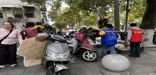 活动前期,社区工作人员实地勘察学校周边路况,梳理人流、车流密集的关键点位,制定详细护学方案,明确人员分工。放学时段,护学队伍迅速到岗,在学校门口、十字路口、人行横道等重点区域开展志愿服务:有的引导学生有序排队离校,提醒孩子们遵守交通规则;有的协助交警疏导过往车辆,劝离违规停放车辆,保障校门口道路畅通;有的留意周边环境安全,为独自离校的学生保驾护航,耐心解答家长咨询。