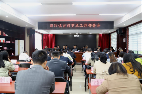 11月11日,丽阳镇召开当前重点工作部署会,镇党委书记甘云云主持会议并讲话,全镇副科级以上干部、各村(社区)党支部书记、各部门负责人参加会议。