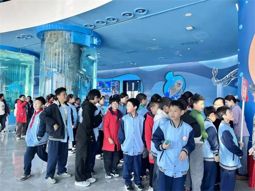 下午,同学们来到了江豚湾水生生物保护基地淡水鱼科研馆,开启了探索之旅。走进水族馆,同学们仿佛置身于蓝色梦幻的水中世界,观赏各种水生生物,探索水底世界的奥秘。
