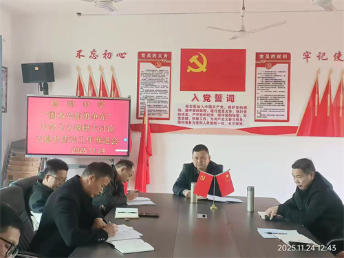 会议伊始,学校党支部书记刘文斌传达学习了全市教育系统“固本兴新勇争先”活动部署会议精神。会议强调,本次活动是夯实办学根基、破解发展难题的关键举措。会议对全体党员干部提出三点要求:一是要深化理论武装,带头抓实大学习,深耕教育政策与专业知识,筑牢思想根基、提升履职素养,始终坚守育人初心。二是要坚持实干导向,带头推进大调研、大讨论,聚焦教学提质、校园治理等重点难点,摸实情、找症结、集众智,精准破解发展难题。三是要强化担当争先,带头推动大提升,切实将学习调研成果转化为实干举措,补短板、提效能,以实干实绩彰显党员先锋作用。