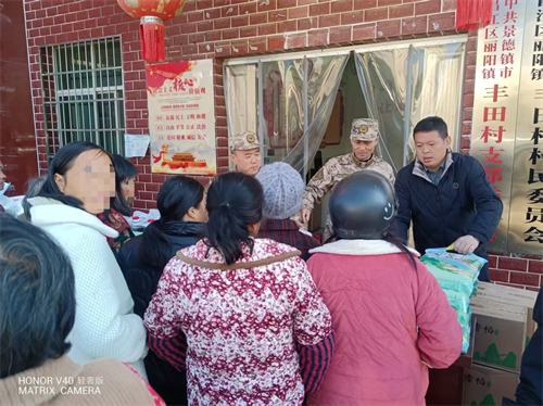 近日,武警景德镇支队政委王刚、副政委李靖一行深入丽阳镇丰田村,实地调研指导乡村振兴工作,并开展入户走访慰问,为脱贫户、监测户送去米、面、油等生活慰问品,传递关怀与温暖。丽阳镇党委委员宁洲陪同。