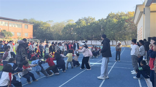 拔河赛场更是气氛热烈,孩子们按年级分组组队,紧握长绳、脚蹬地面,在“一二、一二”的整齐口号中齐心协力往后拉,涨红的小脸、紧握的双手彰显着不服输的韧劲,一旁的妇联干部和志愿者们全程呐喊助威,现场欢声笑语不断。 跳绳比赛中,孩子们身姿轻盈、动作敏捷,彩色跳绳在空中划出优美弧线,伴随着清脆的计数声,加油呐喊此起彼伏。