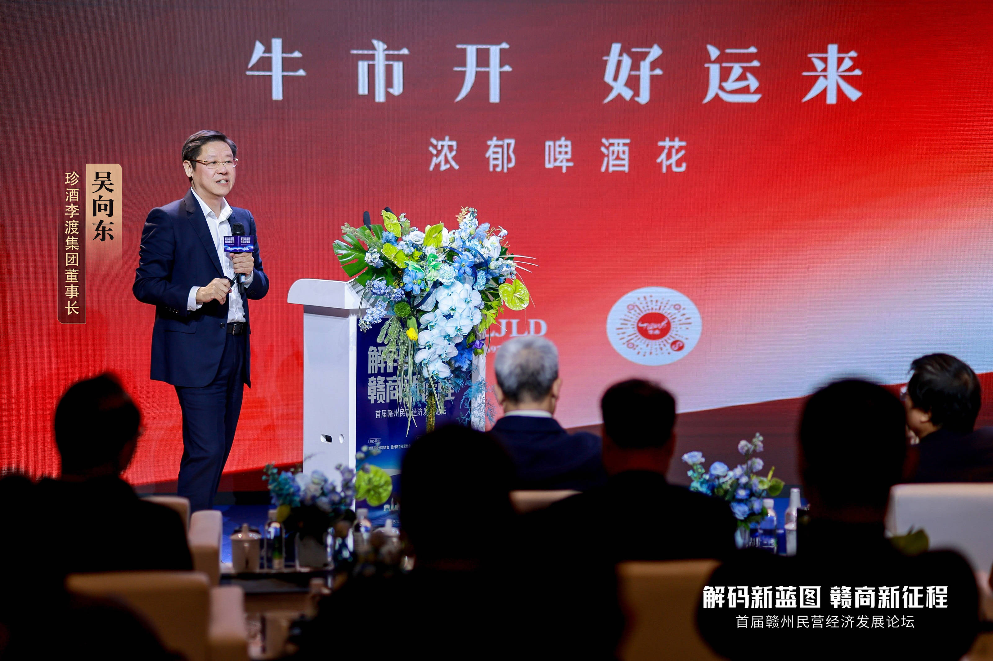 作为赣州民营经济领域的一次高端盛会,本次论坛由赣州市企业联合会、赣州市企业家协会主办,珍酒李渡集团承办。赣州市政协副主席刘春文,赣州市企业联合会会长缪兰英,赣州市财政局、住建局主要负责人,以及北京和君集团董事长、和君商学院院长王明夫,华为投资控股有限公司监事会主席郭平,珍酒李渡集团董事长吴向东等业界领军人物出席,共同为赣州民营经济发展出谋划策。