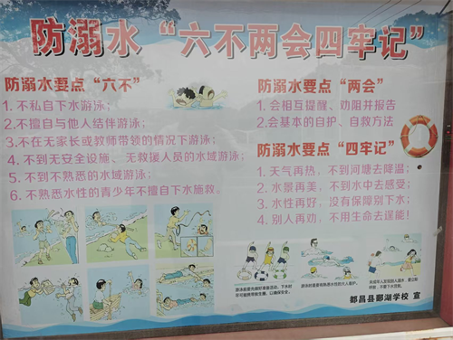 除了校内教育,鄱湖学校还积极与所在社区、村委会联系,对校园周边及学生上下学途经的水域进行安全隐患排查,建议或协助设立安全警示标识。同时,加强学生日常管理,严格落实考勤制度,密切关注学生动向,杜绝学生私自下河、湖玩耍。