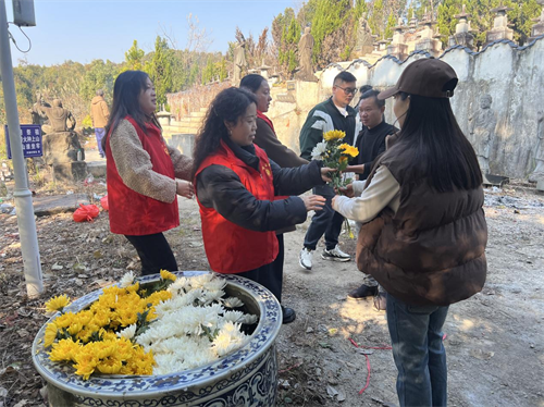 冬至来临,竟成街道洋湖村村委会紧扣移风易俗工作要求,在辖区陵园开展“鲜花替代烧纸”活动,既筑牢森林防火防线,又让文明祭扫新风落地。