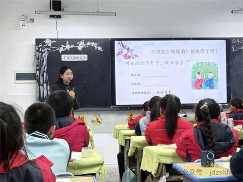 徐沛老师引导学生借助注释和上下文理解文言文大意,通过“读—议—悟”的方式,体会王戎善于观察、勤于思考的品质。课堂中穿插人物对话表演,让学生在情境中感受古人的智慧。