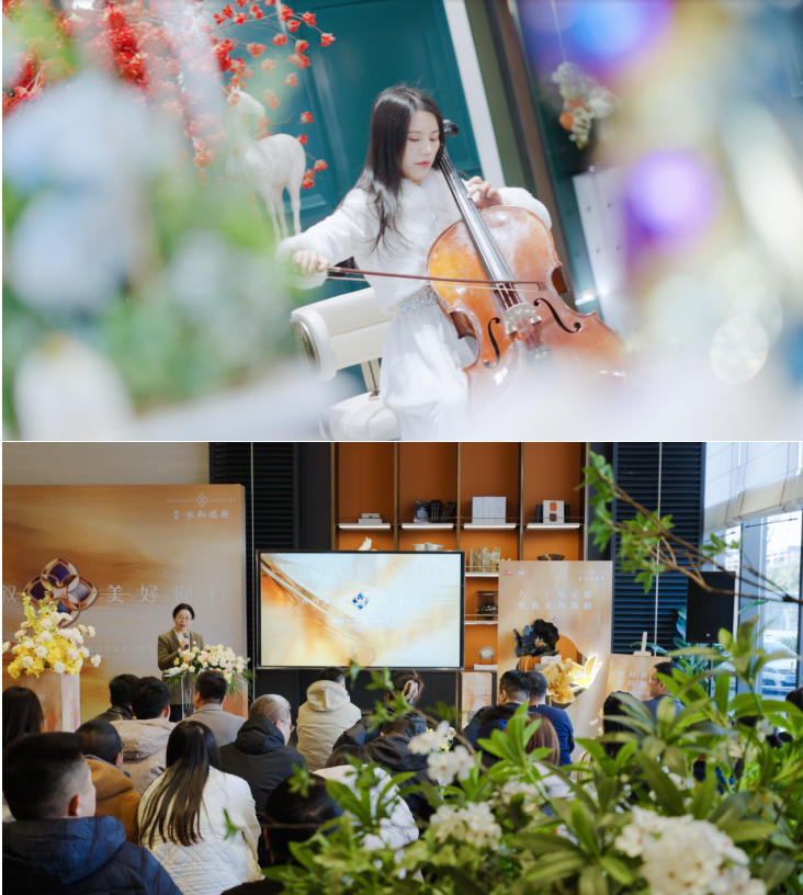 见面会现场,悠扬的大提琴声缓缓流淌,为这场盛会温情暖场。随后由南昌地铁置业领导登台致辞,回溯了十年地铁发展与城市共生的历程,前瞻城市发展脉络,聚焦八一广场正席,全方位解读了地铁·永和瑞府——这部代言南昌、入册时代的TOD藏品大宅范本,充分彰显了永和瑞府筑造时代仰望的修为造诣。