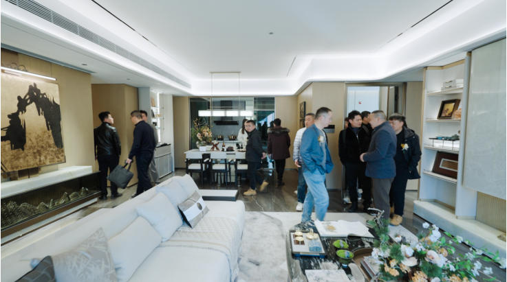 分享环节落幕后,嘉宾们移步样板间品鉴之旅,亲鉴国企精工赋予空间的质感与温度。作为八一广场正席难得的低密大平层作品,其方正通透的格局规划、奢阔舒展的空间尺度,以及藏于细节处的匠心营造,皆让来宾沉浸式感受高阶人居的质感共鸣,更让众人对这座城芯 TOD 藏品的期待愈加深厚。