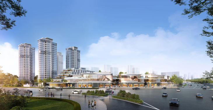 建筑设计上运用极简立面,采用铝板 、格栅 、公建化封窗,兼具品质感与艺术性;园林由大师 DDON 操刀设计,以一街一府两轴串联 5 大园境,造层层递进景观动线;又将商业街与公园景观深度融合,巧妙串联“城市公园商业”到“私家尊贵府邸”的场景有序过渡,营造全龄全时段隐奢微度假体验。