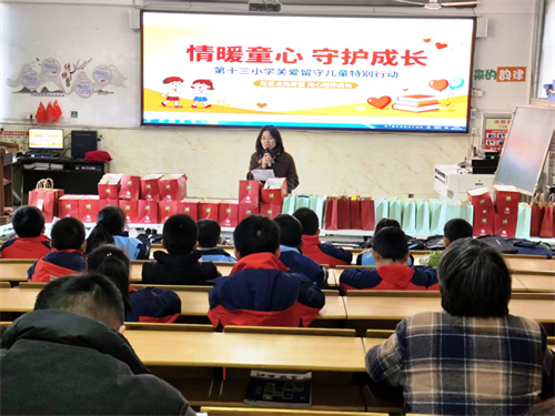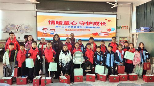 阳光灿烂,是新年绚丽的色彩,金钟朗朗,是新年动人的旋律。伴随着冬日温暖的阳光,伴随着节日里绚烂的色彩,2026年元旦即将到来时,景德镇市第十三小学于12月26日下午举行了“情暖童心,守护成长”关爱留守儿童活动。学校希望通过实际行动为孩子们送去冬日里的温暖与力量,让每一颗留守的心灵都能在爱的滋养中向阳生长,营造关爱互助的校园氛围。