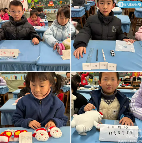 “欢乐购物”环节太有意思啦!孩子们化身小小售货员和顾客,在模拟购物的场景里,认真填写售货单与购物单,一笔一划核算价格、清点零钱。