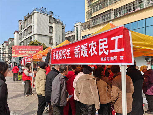 为切实提升农民工群体依法维权意识和能力,近日,竟成司法所深入樊家井社区,开展了“法援惠民生 薪暖农民工”专题普法宣传活动,将便捷高效的法律服务送到群众身边。