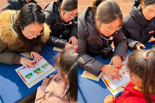 活动中,老师们化身 “闯关引导员”“鼓励员”“记录员”,耐心讲解规则、及时给予孩子肯定与鼓励。孩子遇挫时,一句 “别着急,再想想”“你真棒,再试一次”,让温暖浸润童心;老师们还用心捕捉孩子们闯关的精彩瞬间,将成长的美好时刻永久定格。