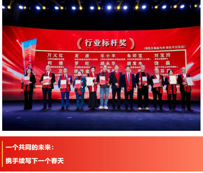 随后颁发的“洪大之星“洪大之光”“突出贡献奖”等荣誉,延续这份温暖,照亮了在员工和商户对洪大发展不同维度的贡献:有情系市场的老洪大人、有诚信经营的商户模范、也有锐意创新的新一代。正是一代代“洪大人”之间薪火相传、生生不息的文化认同,构成了洪城大市场最坚实的内在骨架,支撑它走过过去,也拥抱未来。