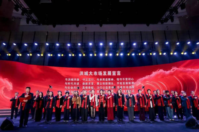 随后上演的大型情景剧《共见洪大》,以真实故事生动再现市场发展历程中的奋斗画卷与创业精神。最终,全场深情合唱《逐梦洪大》,为庆典画上圆满句号。几代洪大人的歌声汇聚成流,既唱出彼此扶持、扎根于斯的深厚情感,也奏响了同心并肩、共赴新程的崭新乐章。