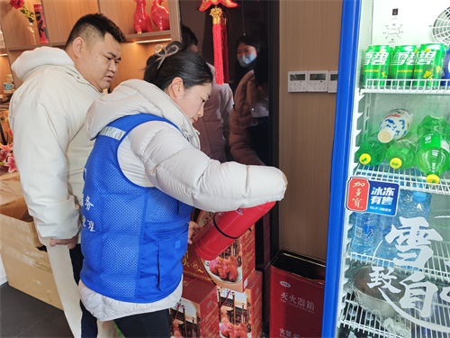 紧接着,社区工作人员和网格员兵分多路,带着消防安全宣传单走进沿街商铺和小区楼道。在餐馆、便利店等场所,大家一边讲解冬季防火要点,一边检查灭火器的有效期、压力值,以及消防通道是否畅通。发现问题就当场提醒整改,还手把手教商户正确使用灭火器。在小区楼道里,大家也仔细排查消防设施,清理堵塞通道的杂物,居民们纷纷说“社区这么上心,住着更踏实了”。