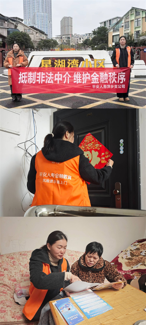 临近春节,非法金融活动频发,为切实维护社区居民财产安全,筑牢金融防护网,近日,平安人寿萍乡支公司走进星湖湾小区,开展“抵制非法中介维护金融秩序”主题宣传活动,提醒广大居民警惕节日期间的“非法中介”“高息保本”等诱惑,通过正规金融机构进行理财。
